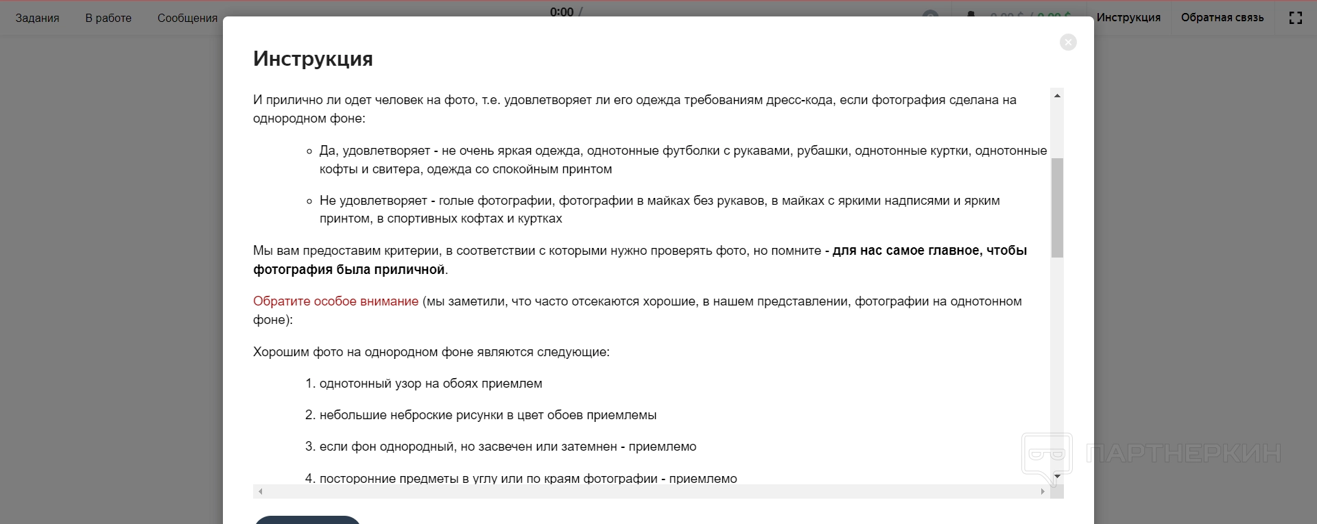 После ознакомления с инструкцией считается, что пользователь прошел необходимое обучение для допуска к задаче. Далее ему просто необходимо определять, какое фото проходит, а какое нет.