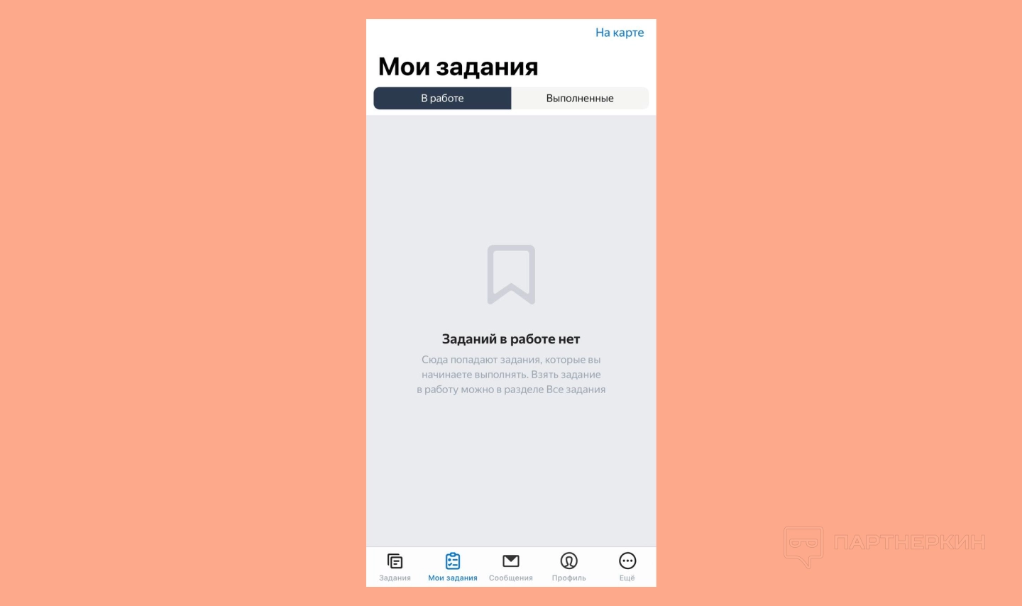 Мои задания — этот раздел практически идентичен веб-версии. В нем показываются задания, которые находятся в работе у пользователя. Но при этом есть отдельный пункт, в котором собираются все выполненные задания.