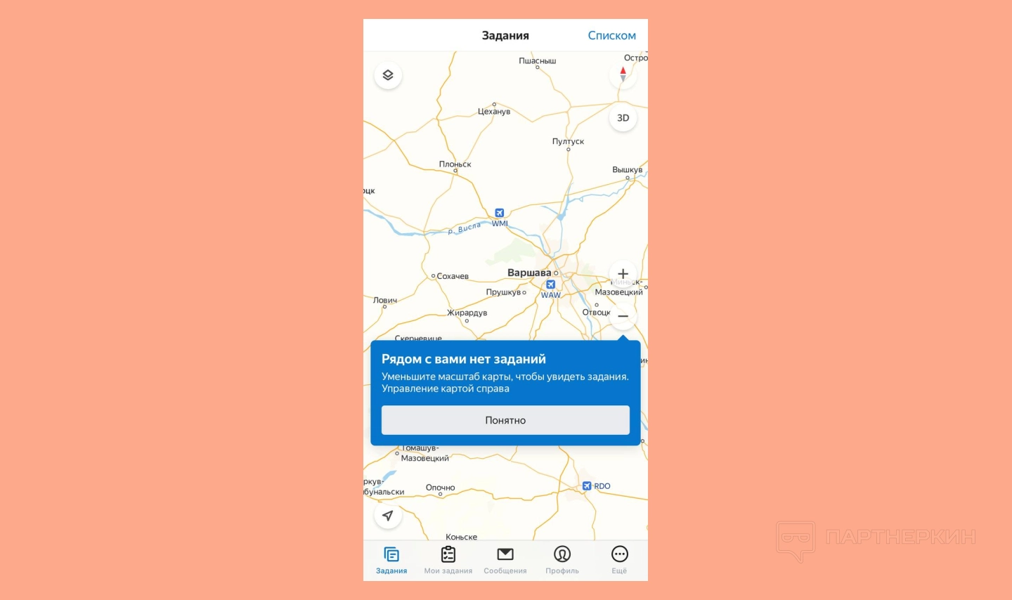 - показ заданий — тут настраивается, какие задания будут отображаться во всех списках. Например, полевые, то есть те, что отмечены на карте, с обучением, с отложенной приемкой или 18+;