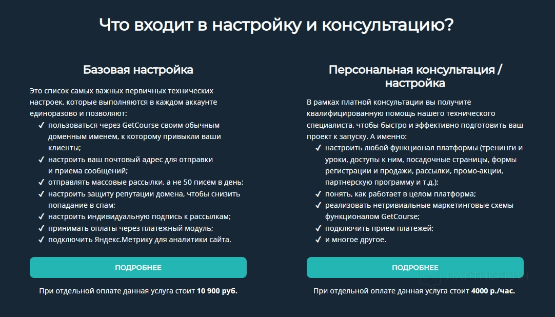 Специалисты проведут техническую настройку, после которой пользователь сможет собирать страницы, делать рассылки, проводить тренинги и принимать оплаты. Сотрудники помогут со следующими моментами: