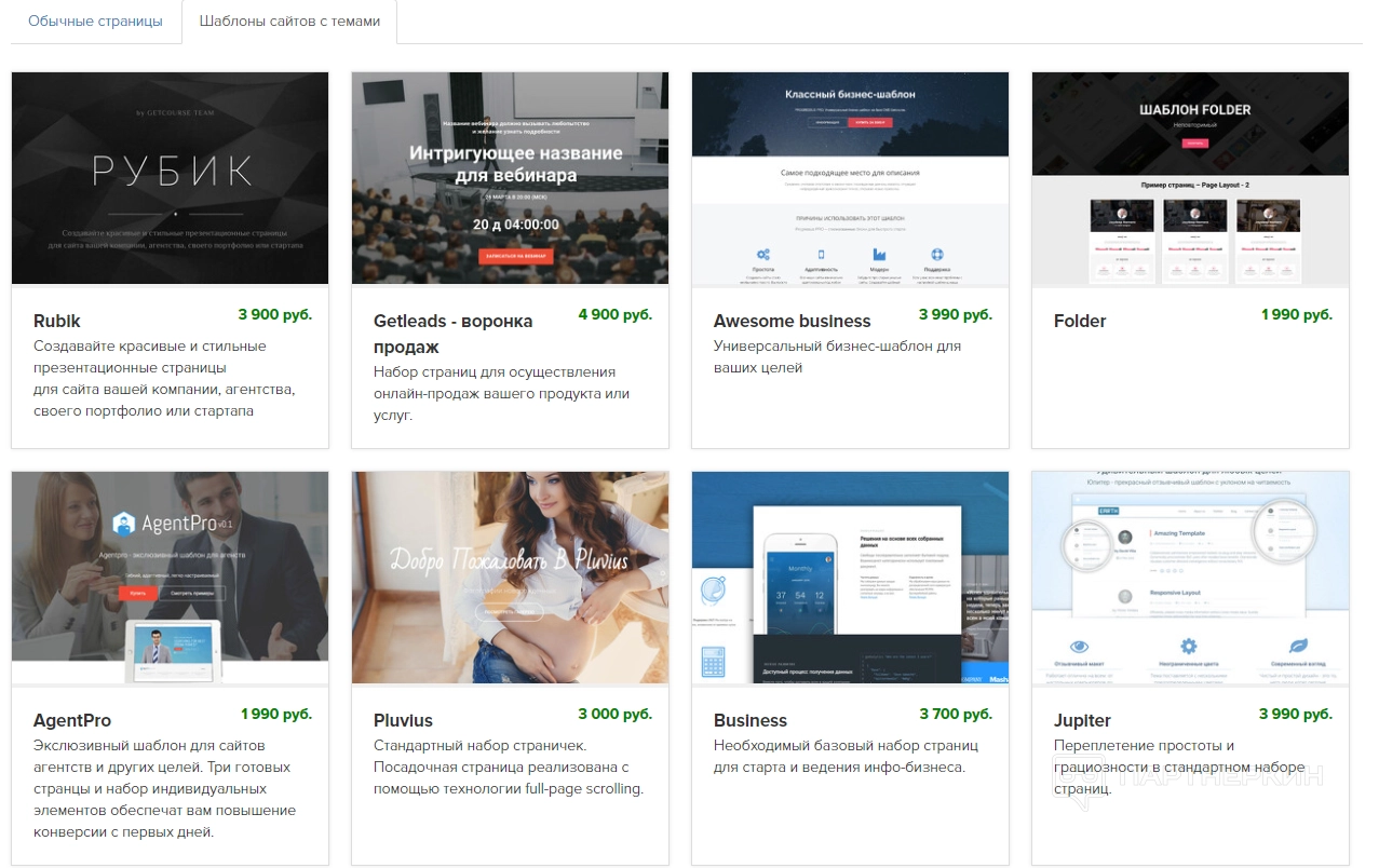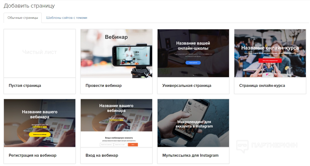 Здесь можно добавить страницу для вебинара, онлайн-курса, регистрации на вебинар или создать универсальную страницу. Для этого необходимо выбрать любой шаблон и следовать подсказкам на экране.