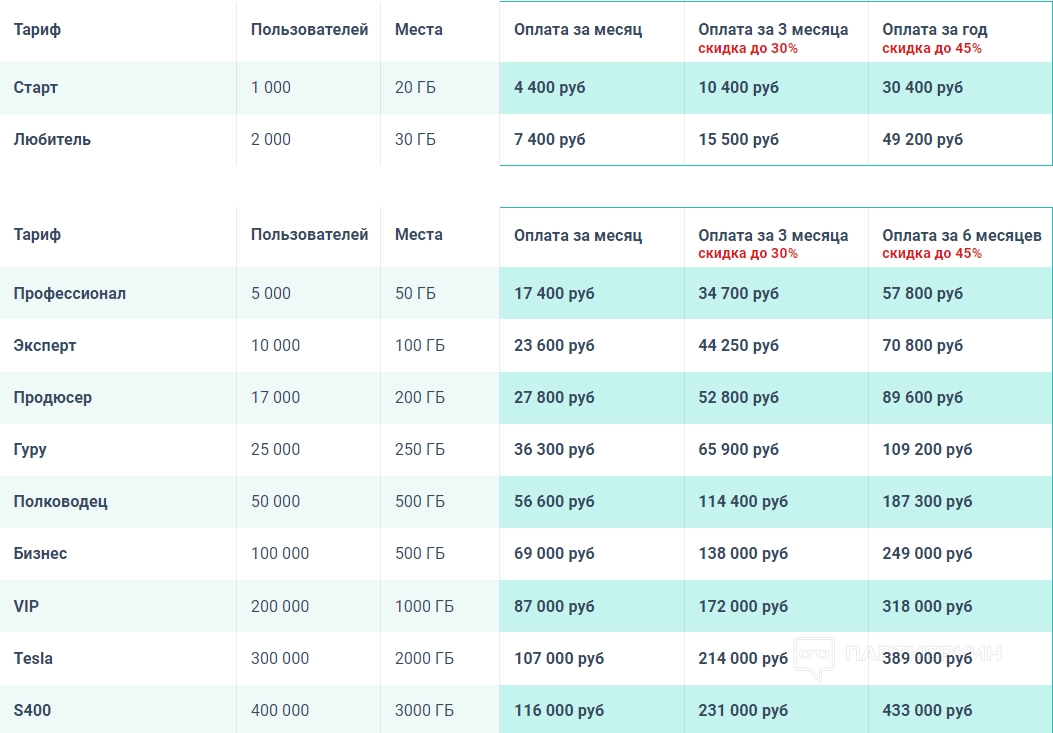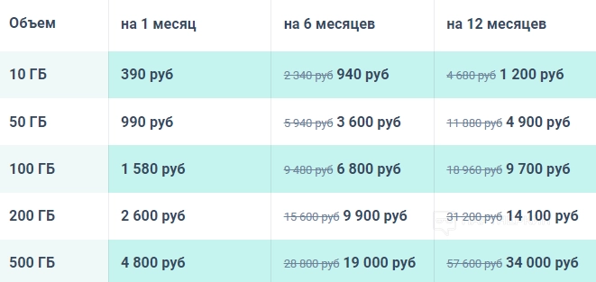 В зависимости от выбранного тарифа каждый пользователь бесплатно получит от 20 Гб до 4 000 Гб файлового хранилища (он обладает широким каналом и быстрым доступом к данным и CDN).