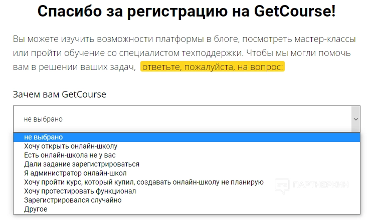 После заполнения полей и согласия на обработку персональных данных необходимо нажать кнопку «Зарегистрировать». Сервис поблагодарит пользователя за регистрацию и попросит ответить на вопрос — «Зачем вам