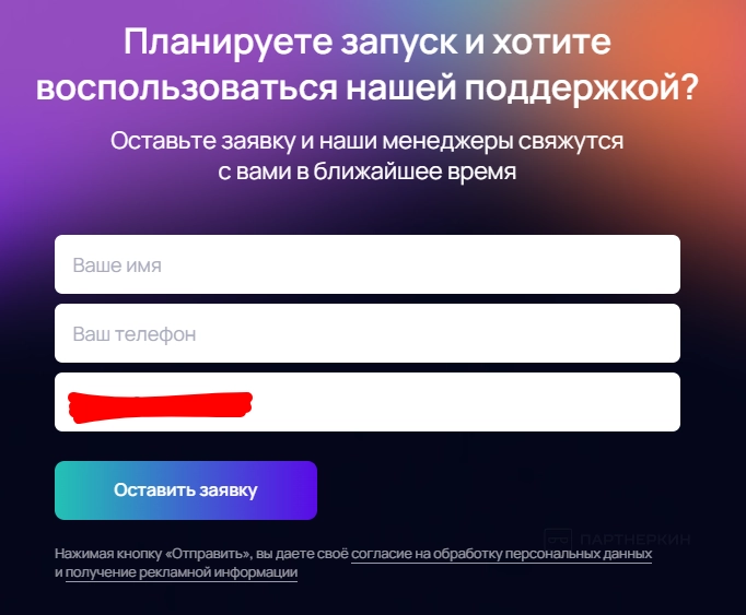 Чтобы получить поддержку, нужно в форме указать имя, телефон и электронную почту.