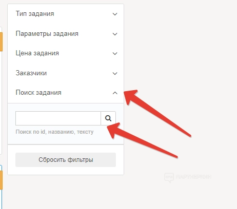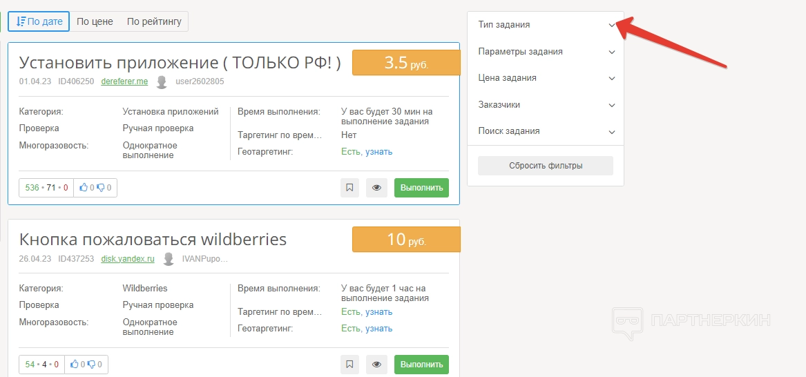 В правой части экрана находится панель с настройками заданий. В разделе «Тип задания» пользователь может отметить категорию заданий, которые хочет найти для выполнения. Какие варианты доступны: