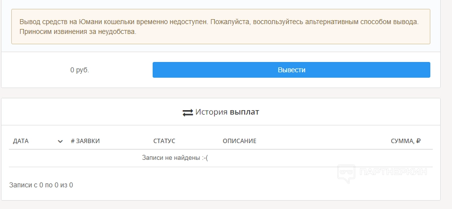 Перейдя в раздел «Партнерская программа», вебмастер увидит 2 вкладки: