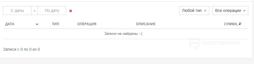 На главной странице вкладки «Мой баланс» отображается общая история всех финансовых операций. Для этого предусмотрена специальная таблица и система фильтрации, разделяющая платежи по разным параметрам.
