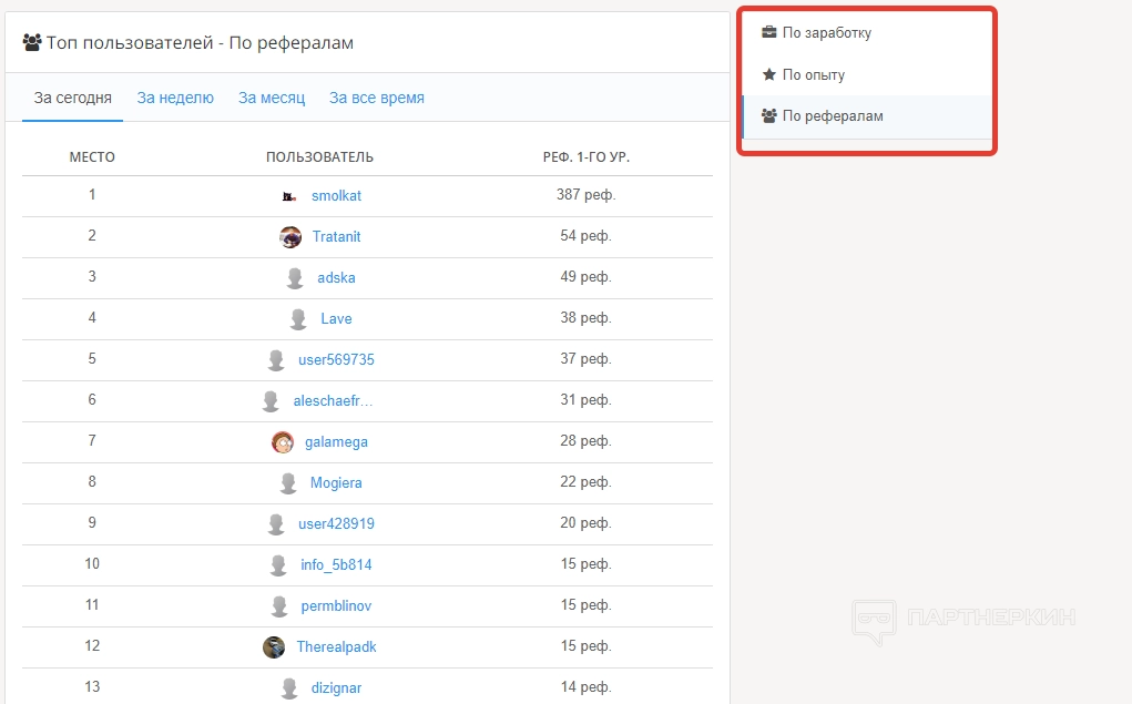 В статистике владелец аккаунта найдет свой процент, который зависит от количества рефералов, число привлеченных пользователей и количество заработанных средств. В блоке с информацией о рефералах отображается их имена, дата регистрации, уровень аккаунта и баланс.