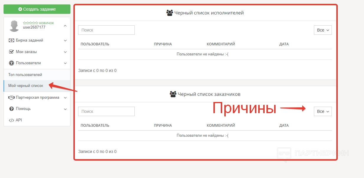 Раздел «Заказчики» поможет отобрать заказчиков, используя соответствующий фильтр. Есть специальная кнопка, с помощью которой можно скрыть заказчиков из черного списка.
