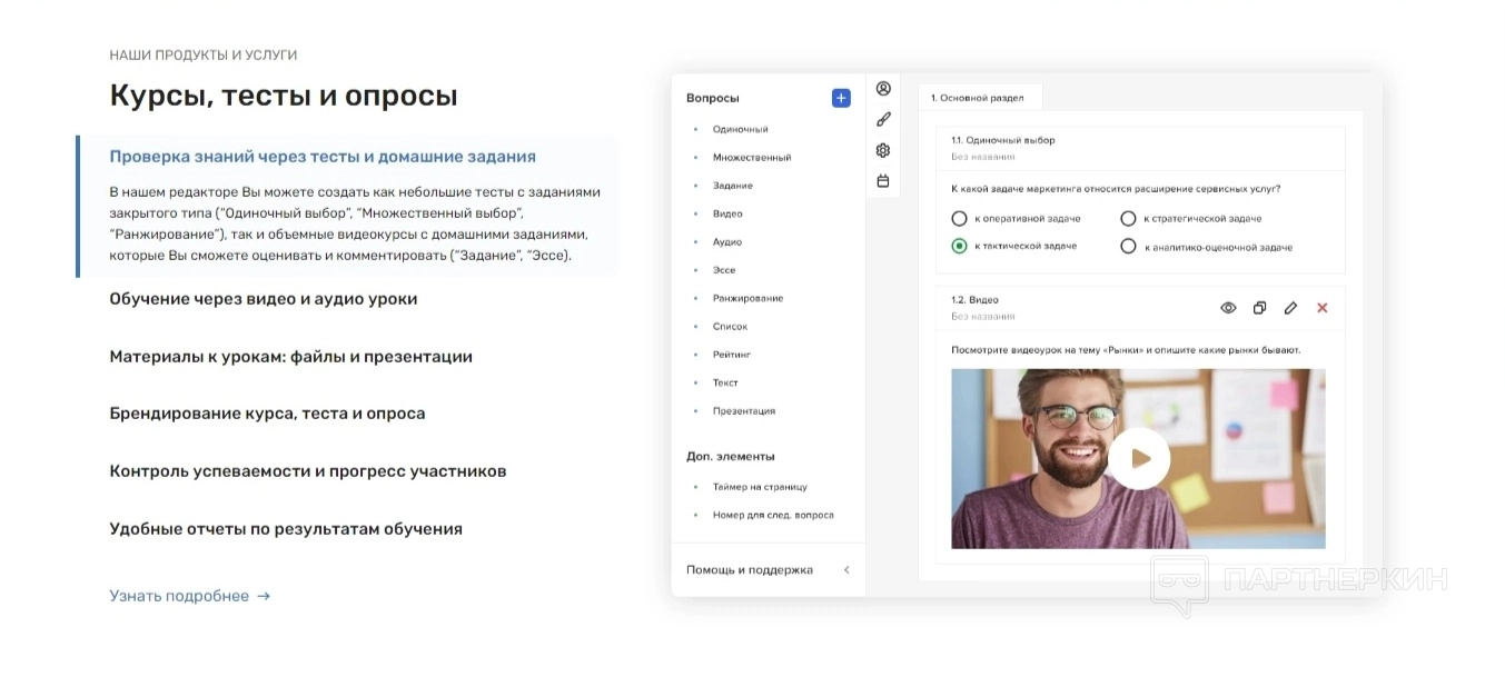 - созданию разных форматов обучения (аудио, видео, записи и так далее);