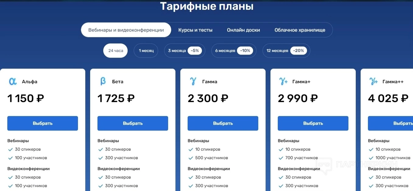 - для вебинаров и видеоконференций — оплачивается количество спикеров с участниками, а также хранилище данных;