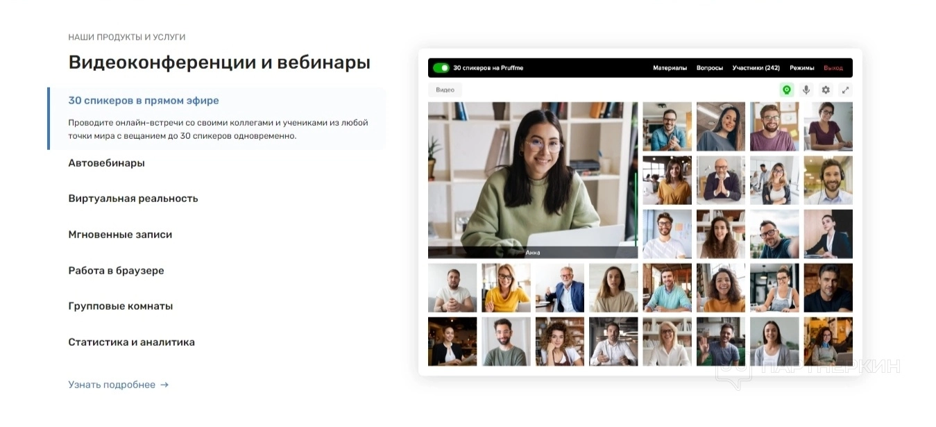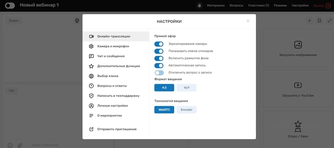 Для создания вебинаров и видеоконференций сервис предлагает множество возможностей: