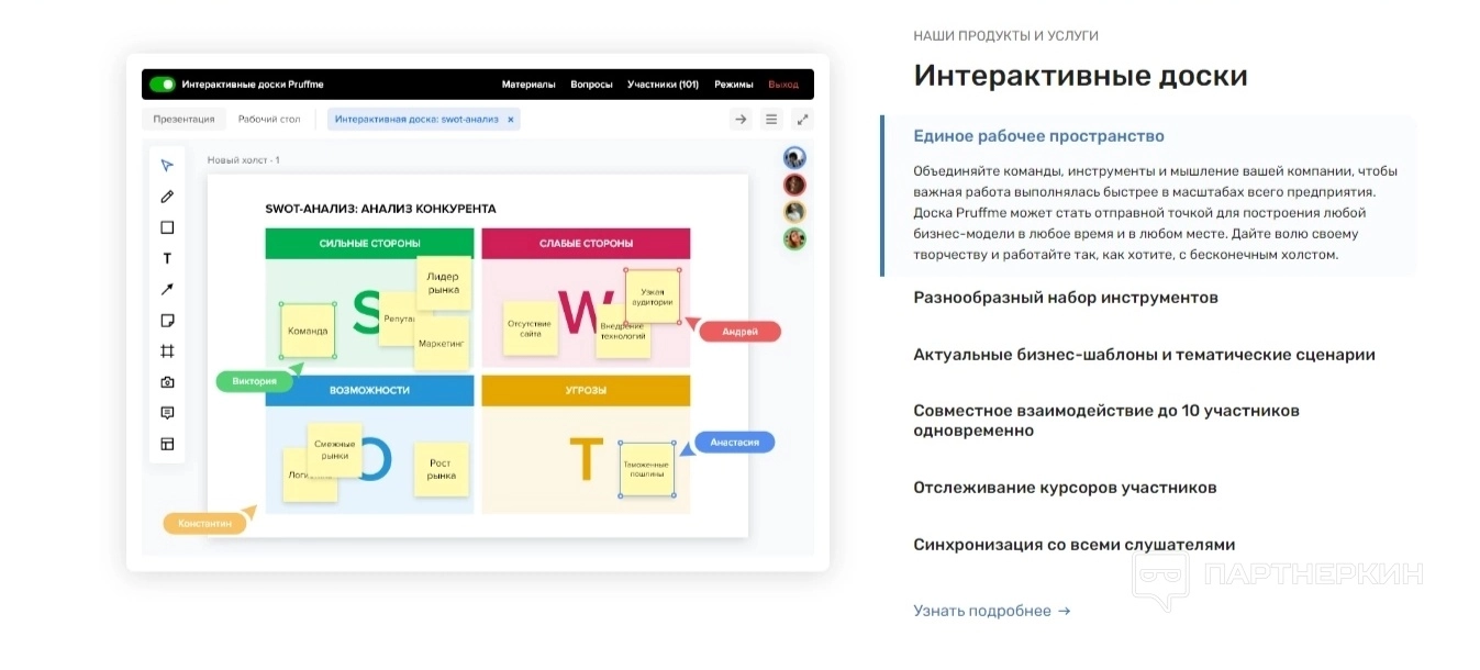 Следующий формат работы — Интерактивные доски . Для работы с ними у сервиса имеются: