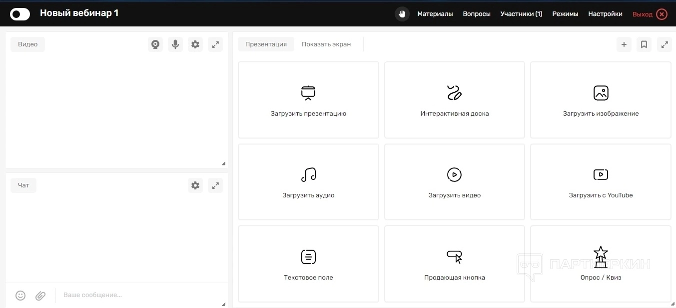 Здесь можно загрузить презентацию, дополнительные медиа, добавить продающую кнопку и многое другое. Помимо этого можно настраивать режимы проведения мероприятия, просматривать участников и так далее.