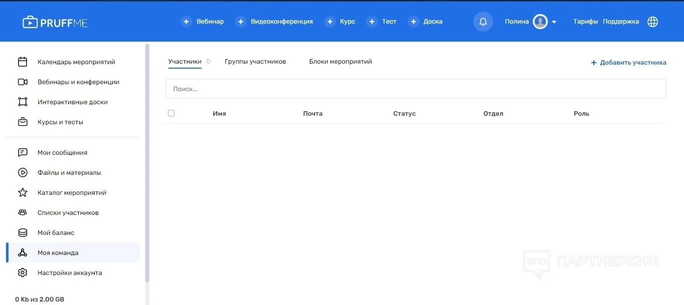 Последний раздел, который еще не повторялся и не рассматривался, — моя команда . Здесь можно добавлять или удалять дополнительных администраторов в проекты, исходя из разрешенных лимитов тарифа.
