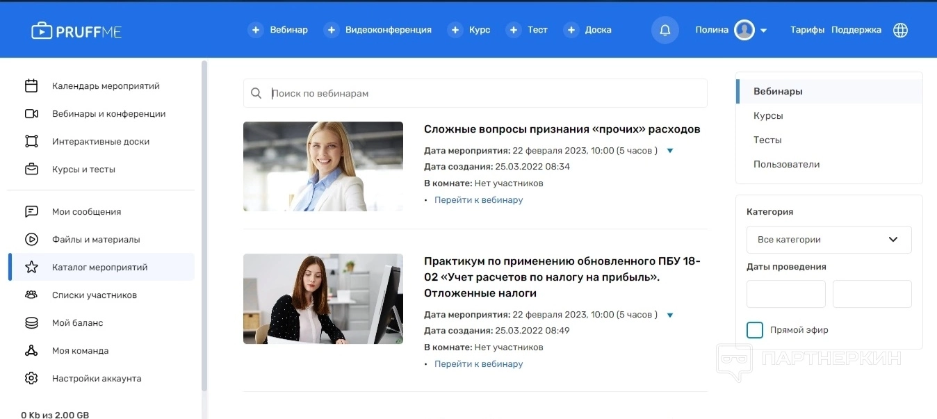 В Каталоге мероприятий можно подобрать и посетить полезный вебинар, пройти курс или познакомиться с другими пользователями сервиса.