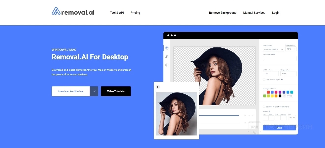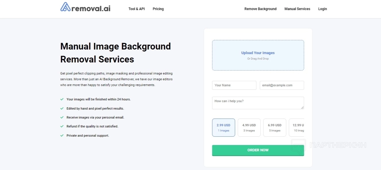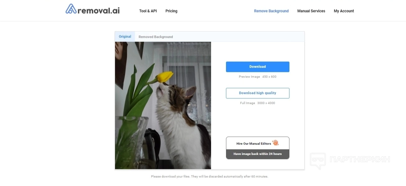 является оптимальным вариантом и решением для удаления фона с изображений посредством ИИ. Платформа предлагает как автоматическую обработку фото, так и ручную от специалистов, однако последняя услуга платная.