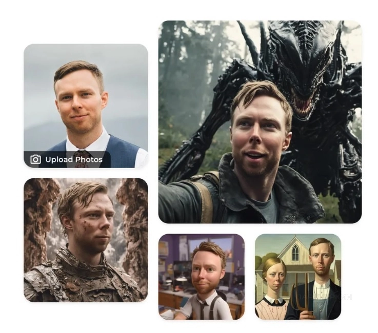Эта опция позволяет раскрыть свой свой творческий потенциал с помощью точно настроенной модели генерации изображений ИИ, которая может создавать изображения пользователя в любом стиле, среде и сценарии. Для использования этой функции нужно загрузить от 20 своих фотографий, чтобы нейросеть на них обучилась, а затем задать параметры и рассмотреть предлагаемые варианты. Генерация происходит в течение 10-20 минут. Можно использовать предустановленные стили, создавать собственные подсказки. Доступно 50+ пресетов.
