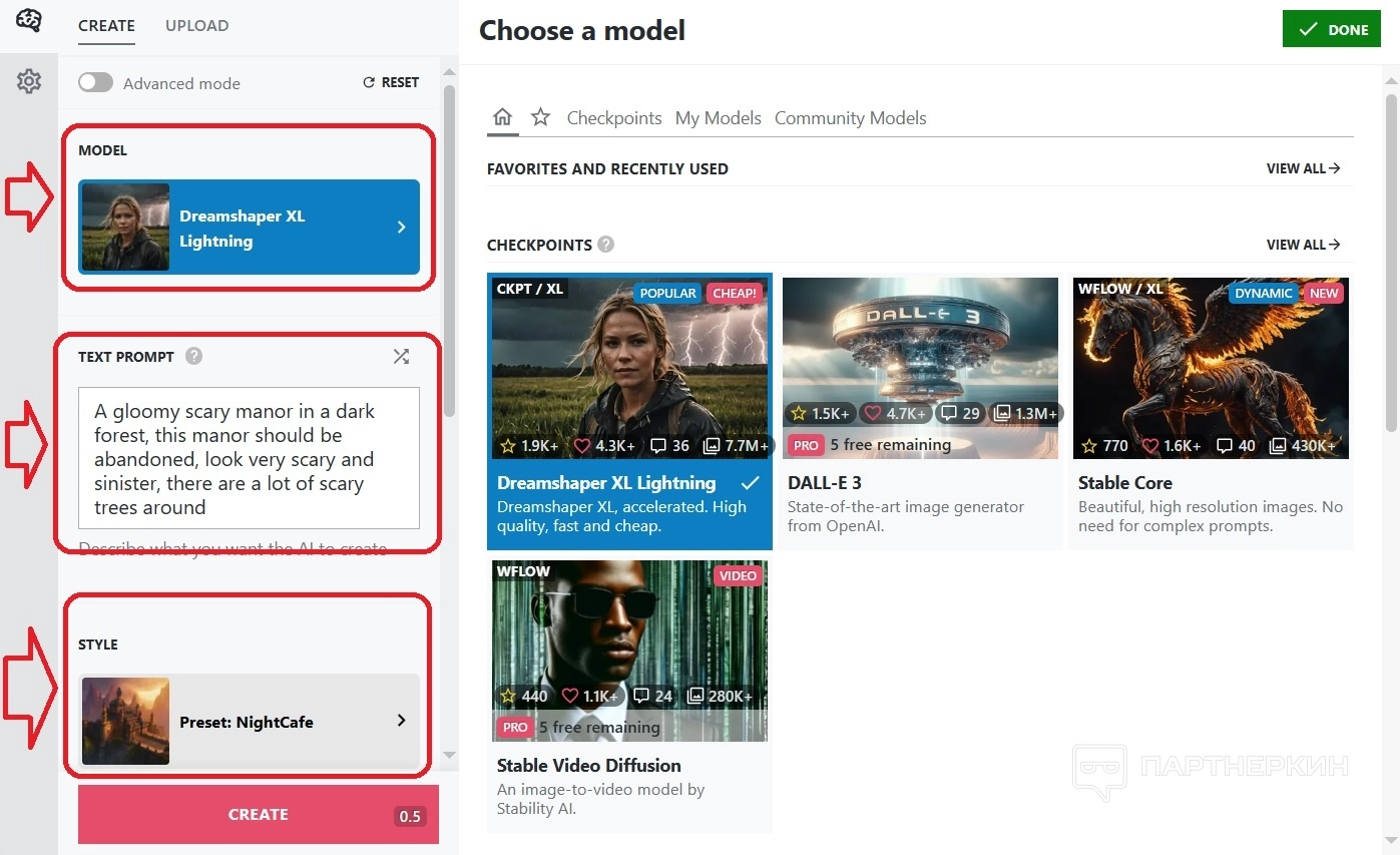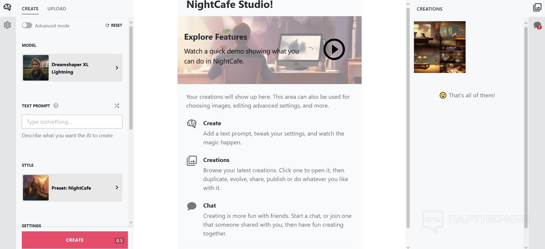 Ниже обозначим ключевые функции Creator Nightcafe Studio.