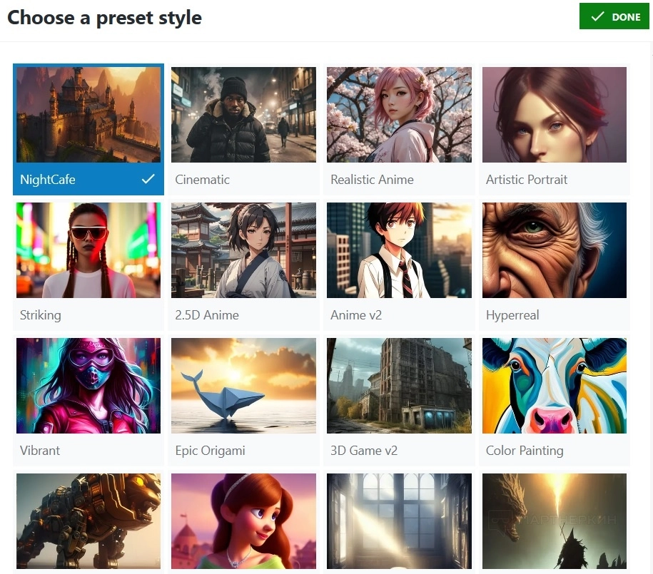 Сервис позволяет работать с большим количеством стилей, в том числе создавать свои авторские стили. Также он предоставляет разумные пресеты. Пользователи получают неограниченное количество бесплатных генераций базы.