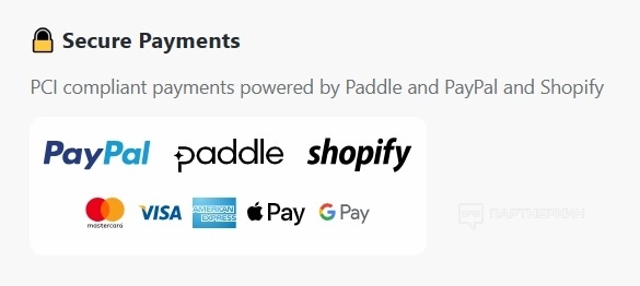 Оплата производится через кассу Paddle. Paddle является зарегистрированным продавцом, который полностью соответствует стандарту безопасности данных индустрии платежных карт (PCI DSS). Доступные платежные средства — PayPal (для тех, кто проживает за пределами РФ), карты MasterCard, Visa, American Express, Google Pay, Apple Pay.