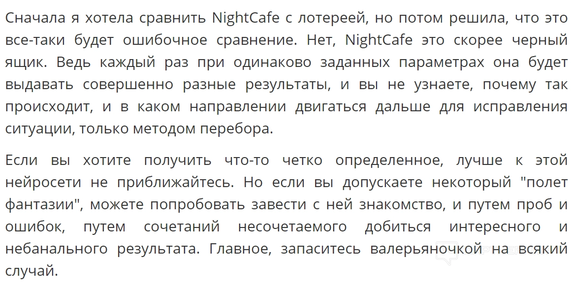 Пользователи отмечают, что результат может получиться непредсказуемым. Однако сервис хорошо использовать для поиска вдохновения и интересных креативных находок: