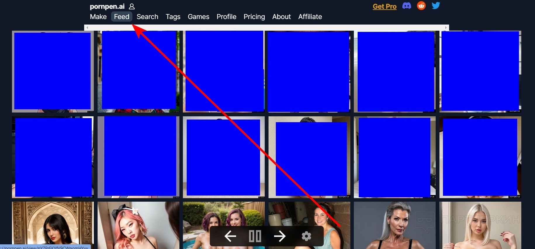 - Feed. Выбор готовых изображений, сгенерированных ИИ;