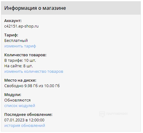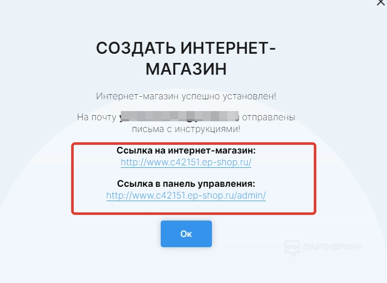 Кликнув на ссылку для панели управления, пользователь попадет в личный кабинет сервиса, где можно будет настроить созданный интернет-магазин.