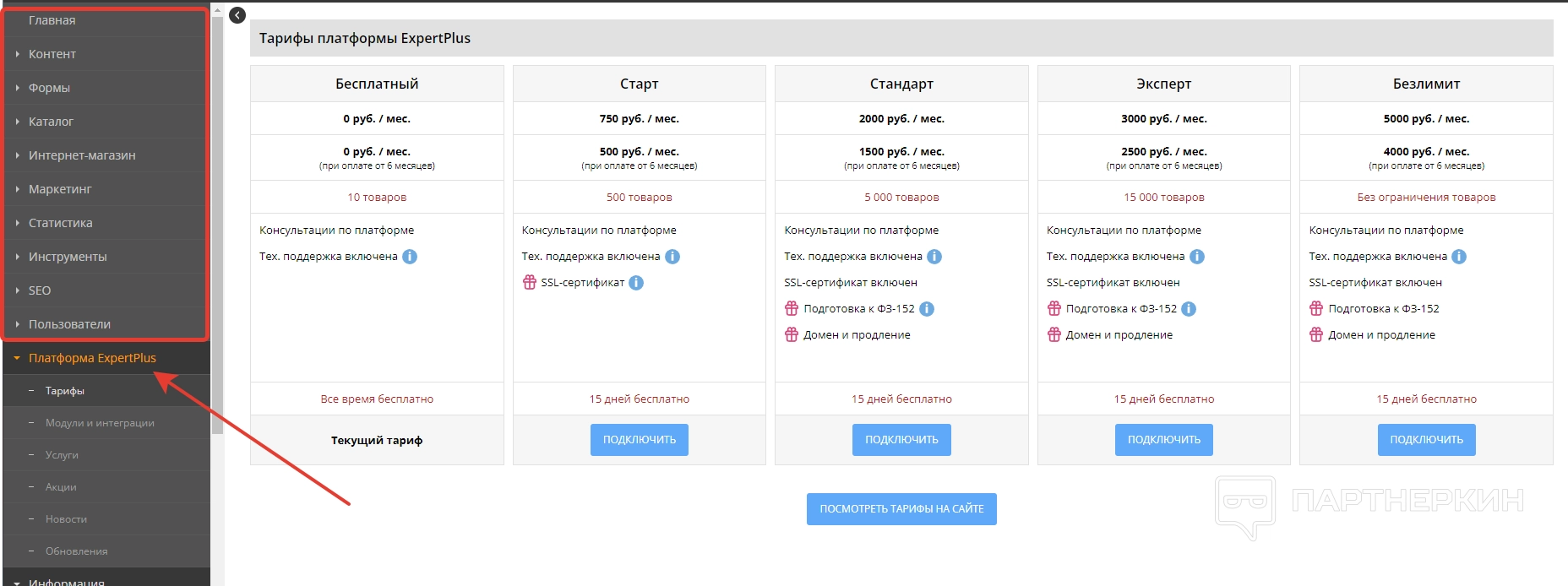 Также есть отдельный раздел «Платформа ExpertPlus», которая за определенную стоимость предлагает дополнительные услуги, модули и интеграции.