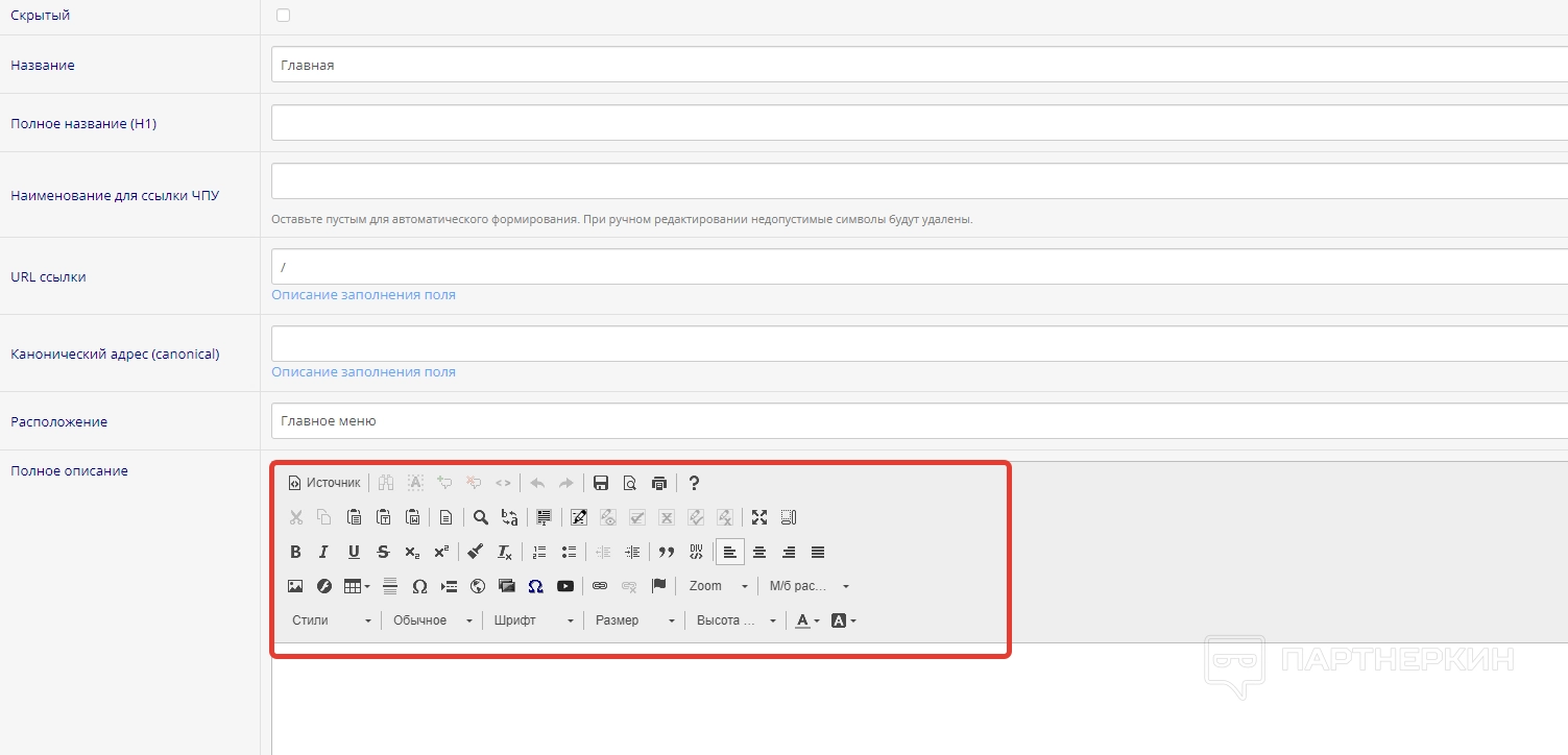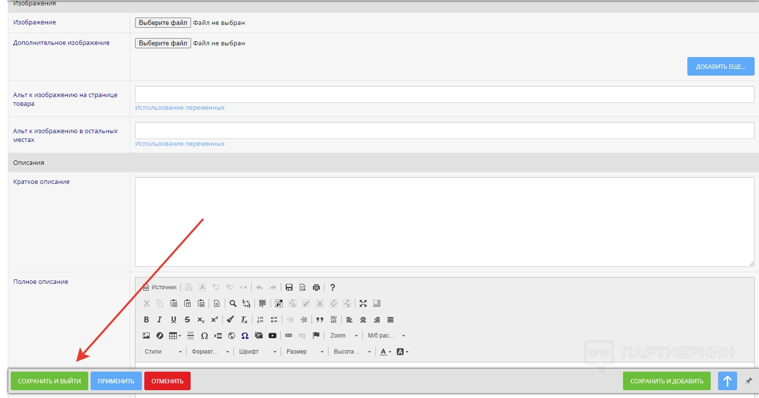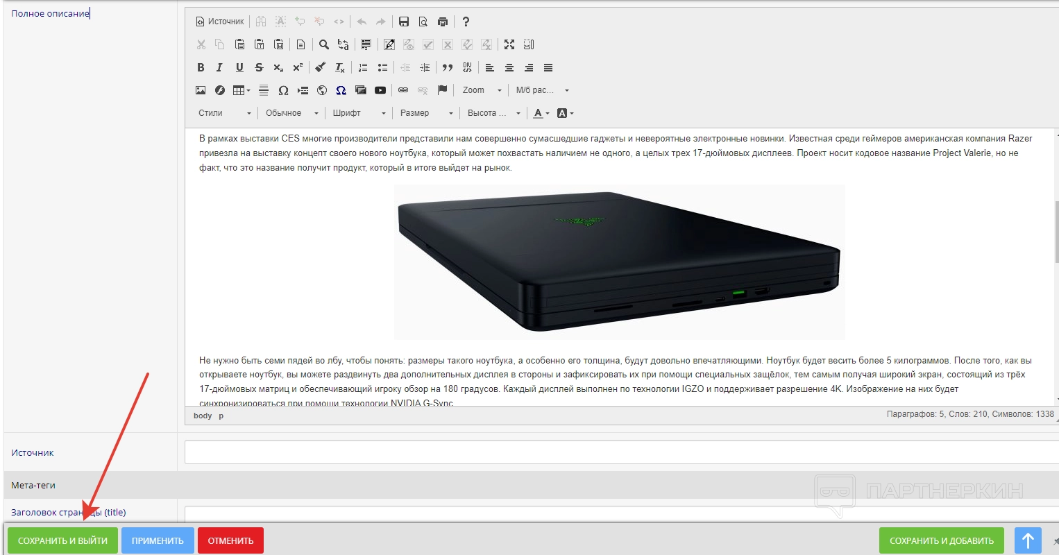 Для полного описания используем редактор. По завершении кликаем на «Сохранить и выйти».