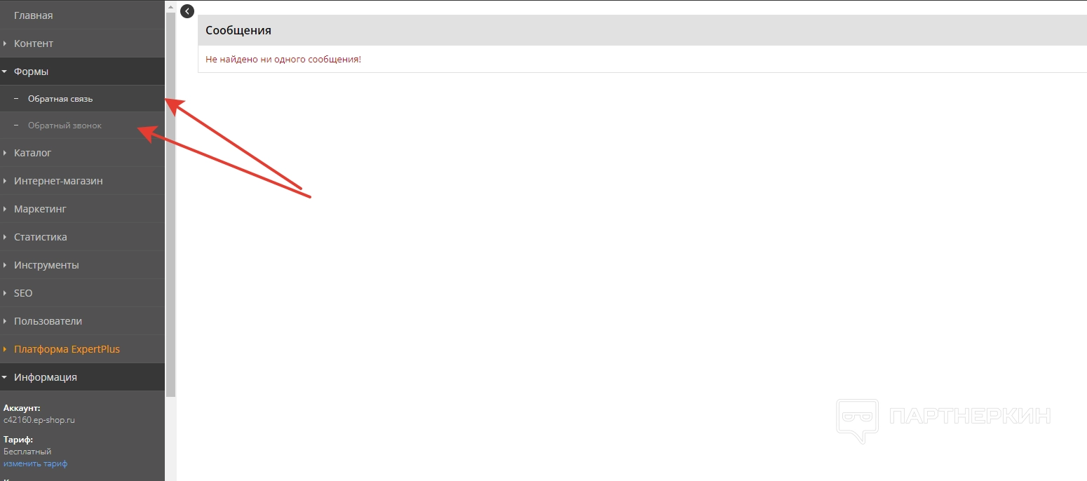 - Формы . Настраиваются параметры обратной связи.