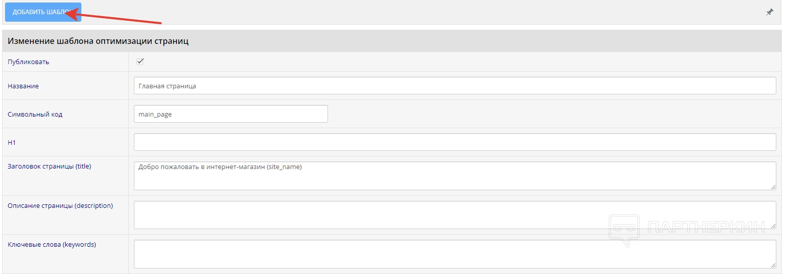 В разделе для SEO-оптимизации пользователь может найти шаблоны, предназначенные для оптимизации страниц. Шаблоны отображаются в таблице и распределены по следующим параметрам: