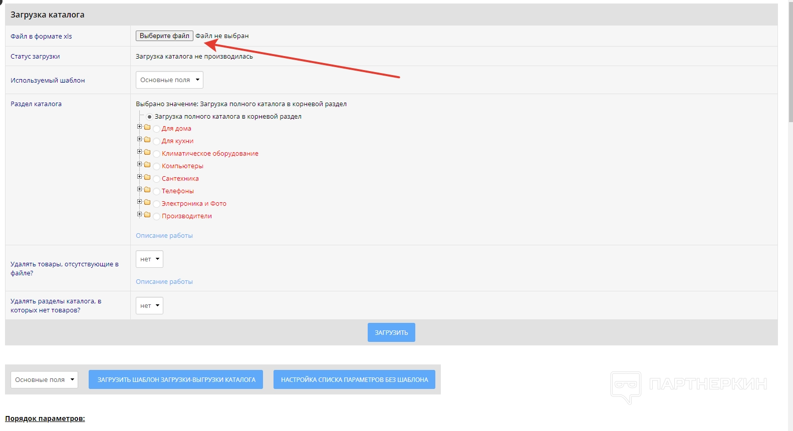Для загрузки каталог используем соответствующую кнопку в верхней части экрана.