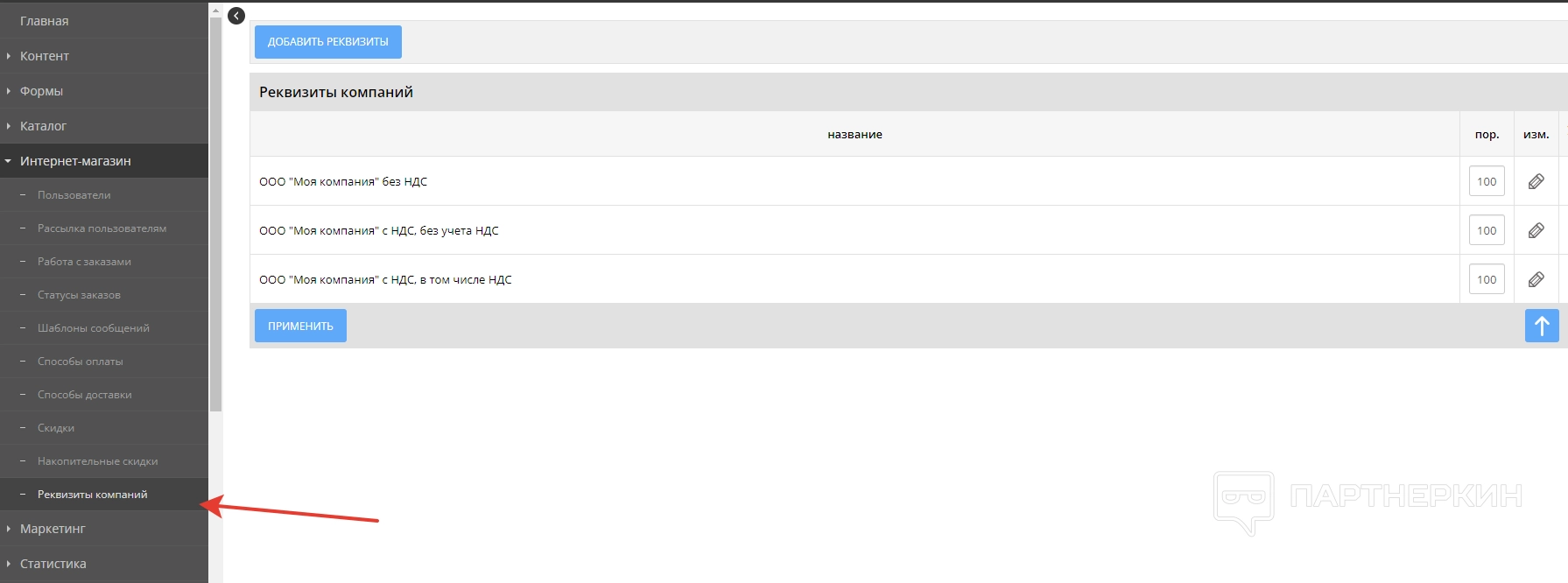 В последней вкладке пользователь должен указать реквизиты своего интернет-магазина.