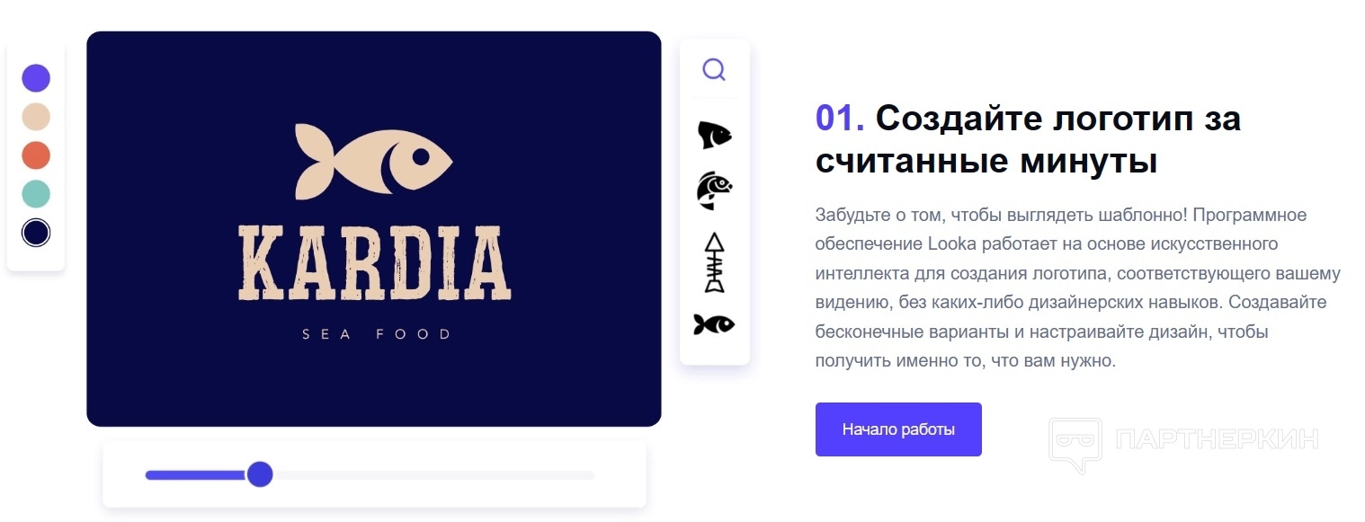 - Экономия времени и ресурсов. Looka позволяет создавать качественные логотипы за короткий срок и за небольшие деньги, что делает его привлекательным для стартапов, малых бизнесов и предпринимателей, у которых может быть ограниченный бюджет на создание брендинга.