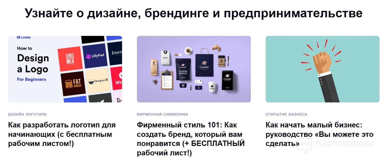 Для новых пользователей и людей без опыта в дизайне представлена краткая информативная видеоинструкция по использованию сервиса. Также на официальном сайте Looka размещены полезные статьи и гайды, с помощью которых можно научиться разрабатывать логотипы с нуля. Там можно найти советы по созданию фирменного стиля, открытию бизнеса, лайфхаки и тренды графического дизайна.