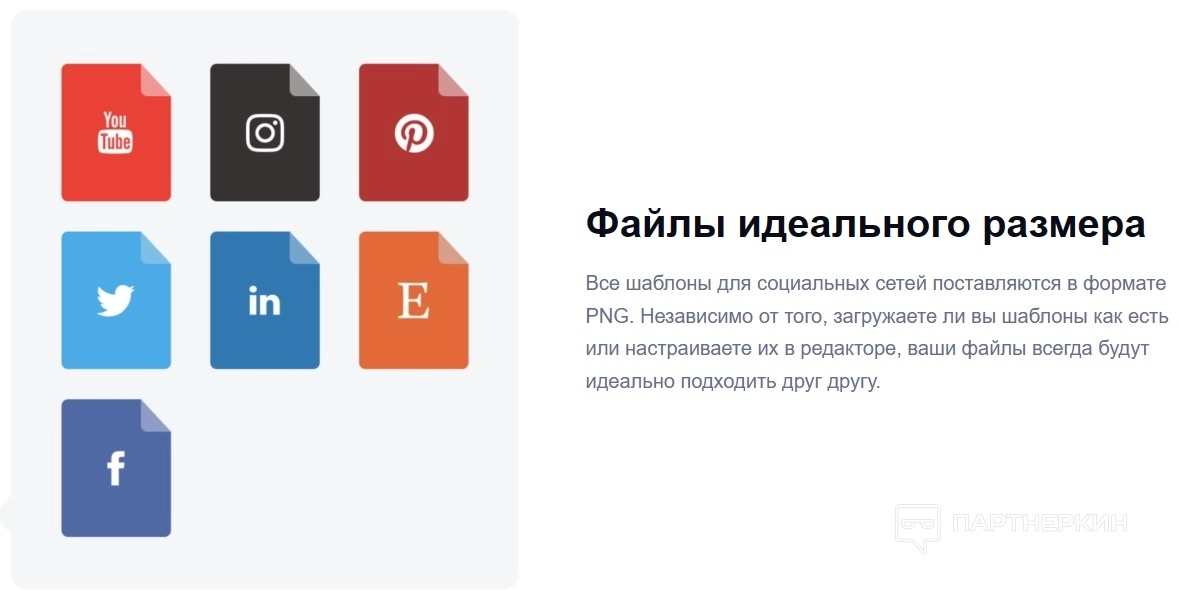 Все шаблоны для социальных сетей поставляются в формате PNG. Независимо от того, загружаете ли клиент шаблоны как есть или настраивает их в редакторе, файлы будут идеально подходить друг другу.