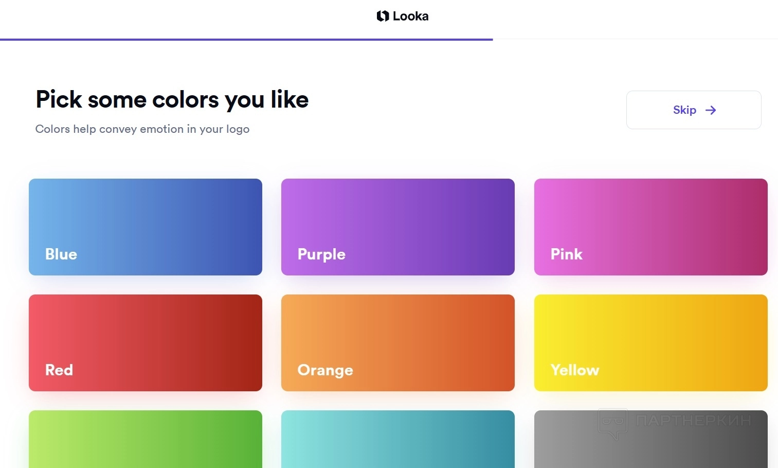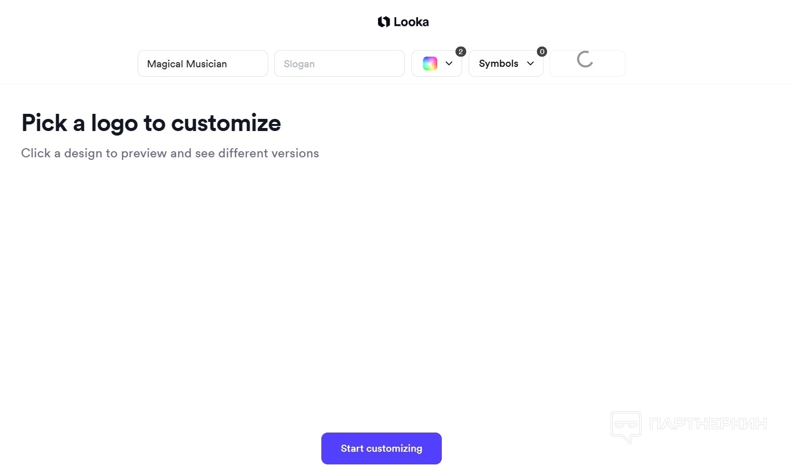 Подключится искусственный интеллект Looka Logo Maker, который будет генерировать варианты на основе сочетаний отрасли, цветов и дизайна. Первые варианты логотипа можно получить уже через 1-2 минуты после начала использования сервиса. Генерация происходит за несколько секунд.