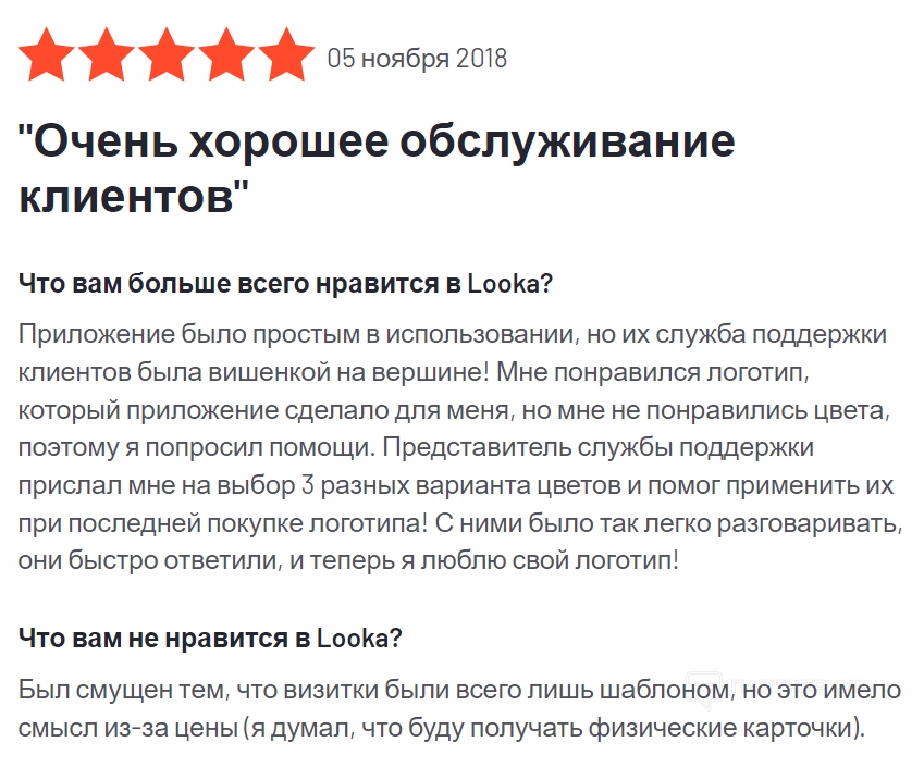 Пользователи хвалят Looka за отзывчивую техподдержку: