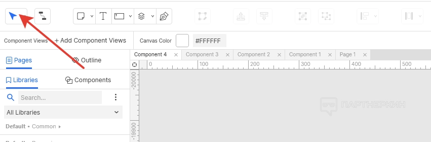 Следующий уровень панели управления предоставляет доступ к основным инструментам. Первым является курсор, с помощью которого пользователь может выбирать, выделять и перемещать объекты в рамках рабочей зоны. Активировать инструмент можно с помощью комбинации «Ctrl+Alt+1».