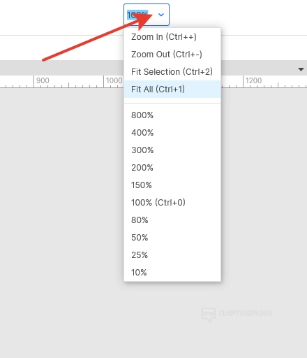 Если нужно приблизить или отдалить проект, используем селектор в правой части экрана.