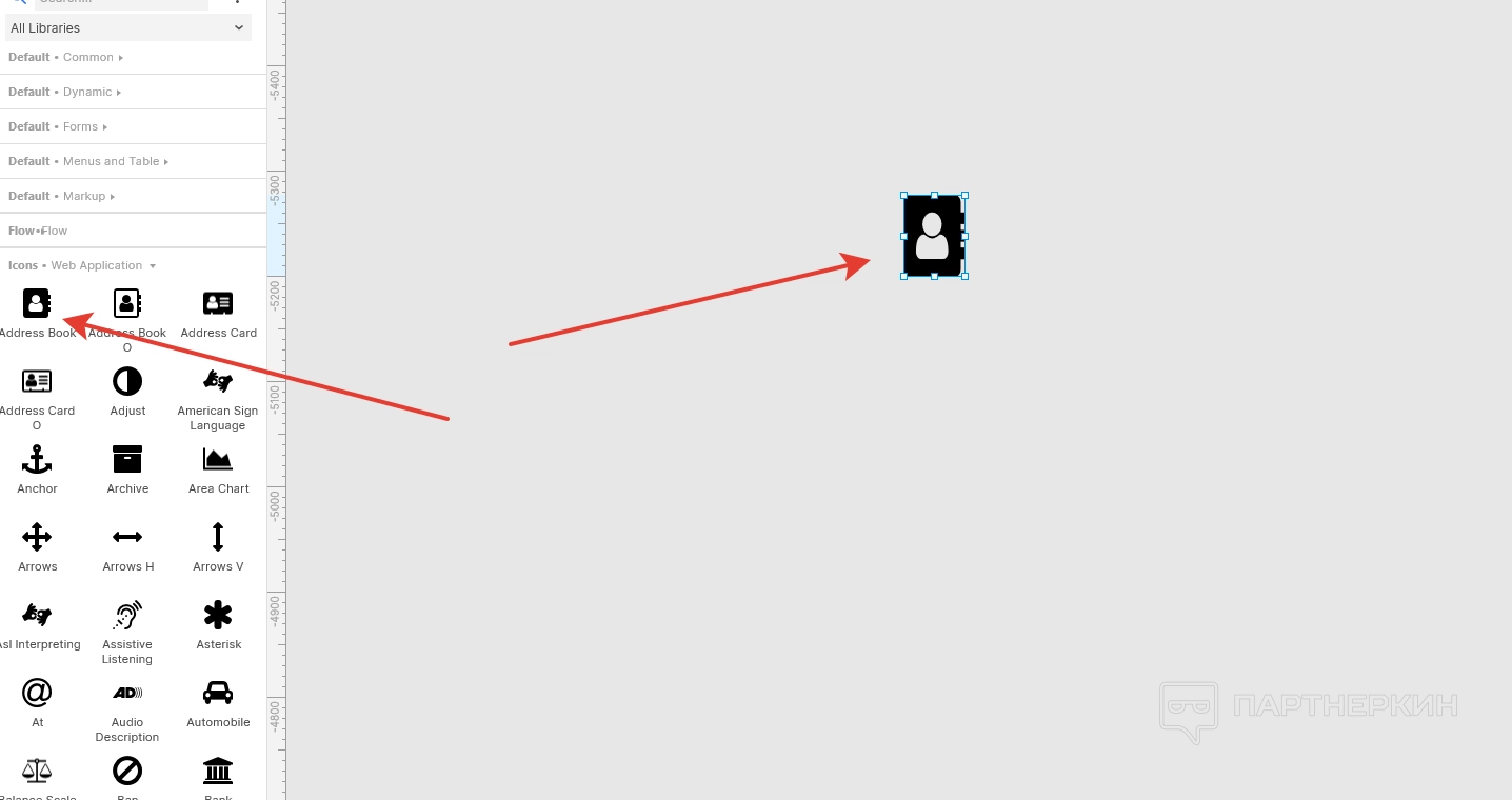 Чтобы воспользоваться шаблонов, просто выбираем подходящий вариант и с помощью мышки перемещаем его в свободную область. После добавления иконку можно редактировать, меняя размер, цвет и прочие элементы.