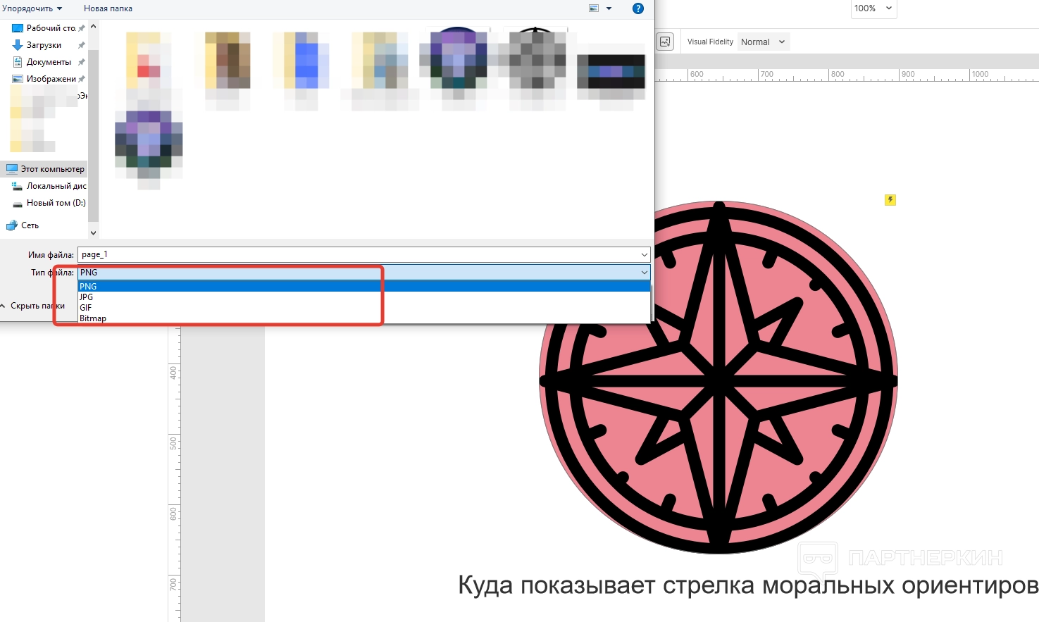 Если же нужно сохранить объект как готовый файл, открывает «File» и выбираем команду «Export Page 1 to Image». Далее указываем один из форматов (PNG, JPG, GIF и Bit) и завершаем экспорт.