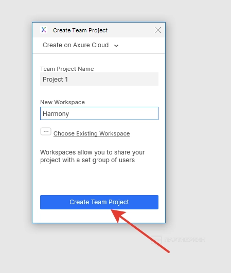 Создает общий проект всего в несколько кликов. Поднимаемся в панель управления и кликаем на раздел «Team». Далее появится контекстное меню, где нужно выбрать «Create Team Project From Current File». В новой форме указываем имя проекта, название рабочего места и нажимаем на кнопку подтверждения.