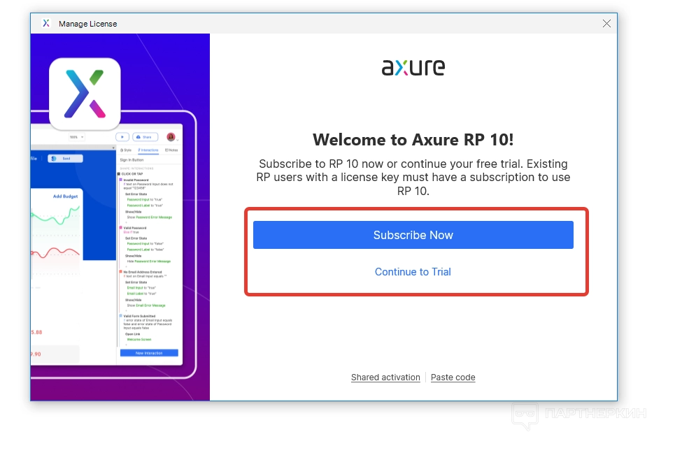 - Continue to Trial — для бесплатного периода.