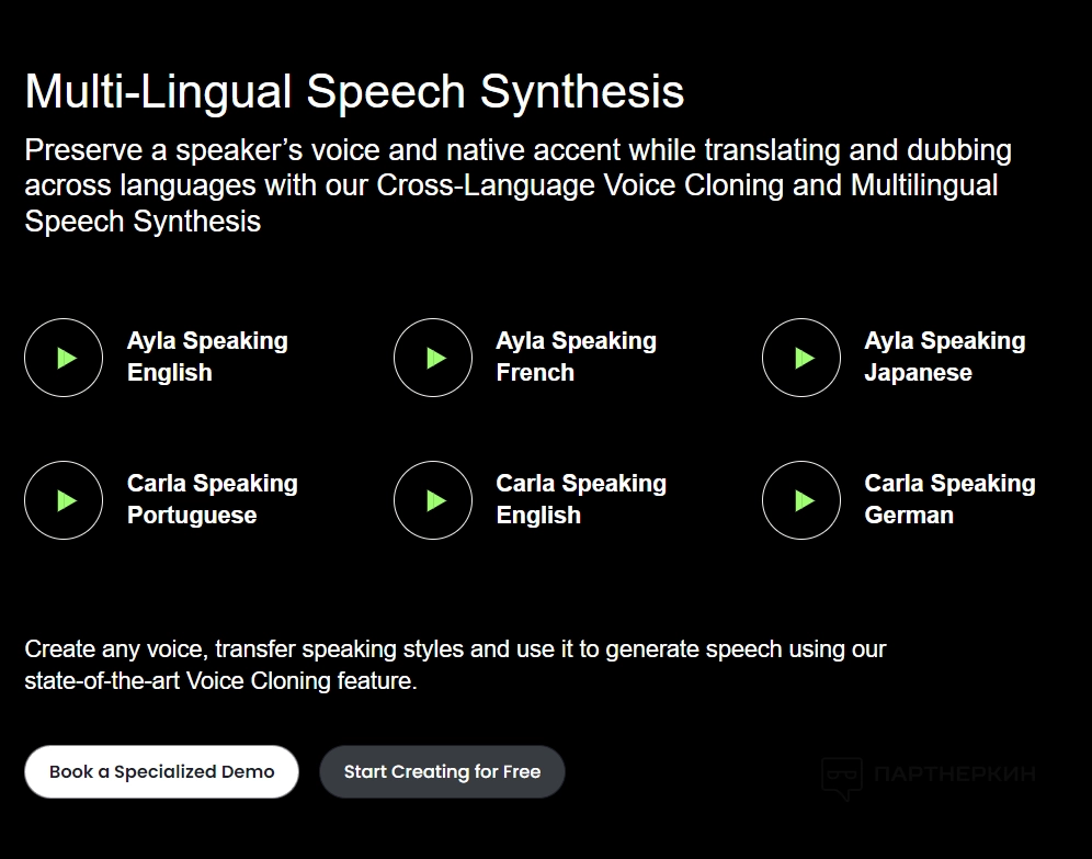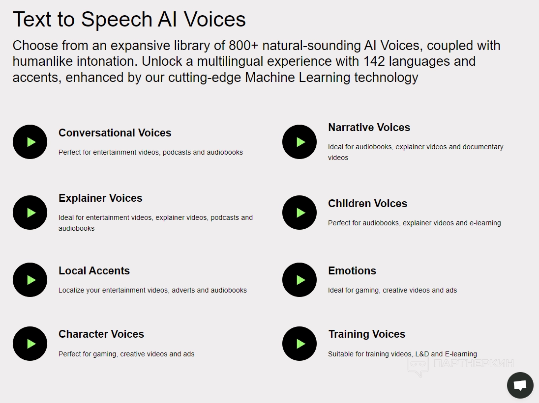 Сервис предлагает более 800 различных голосов, которые можно использовать для озвучивания текста. Эти голоса варьируются по полу, возрасту, акценту и стилю речи, что позволяет пользователям выбрать наиболее подходящий голос для их конкретных нужд. Также есть возможность вносить коррективы в озвучивание текста.