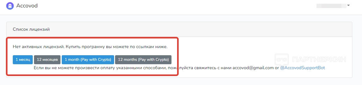 Сразу после регистрация откроется страничка, состоящая из нескольких блоков. В первом блоке находятся ссылки для покупки лицензионной версии программы. На момент написания статьи было доступно 4 варианта оплаты: