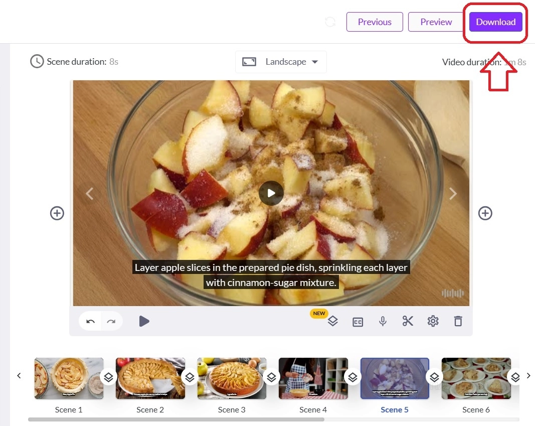 Можно посмотреть каждую сцену, отредактировать кадры, и если всё понравилось, то нажать Download.