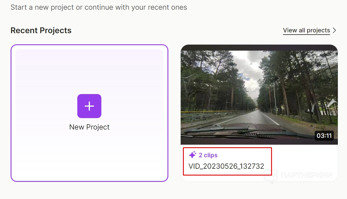 После окончания загрузки откроется папка со всеми проектами, куда будут загружаться все видео. Необходимо выбрать нужный проект, после чего откроется окно видеоредактора.