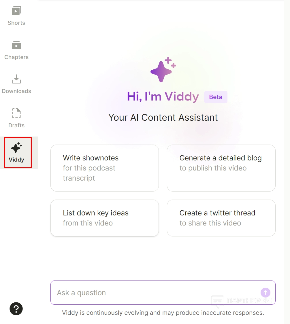 Также дополнительно можно использовать ИИ-ассистента Viddy.